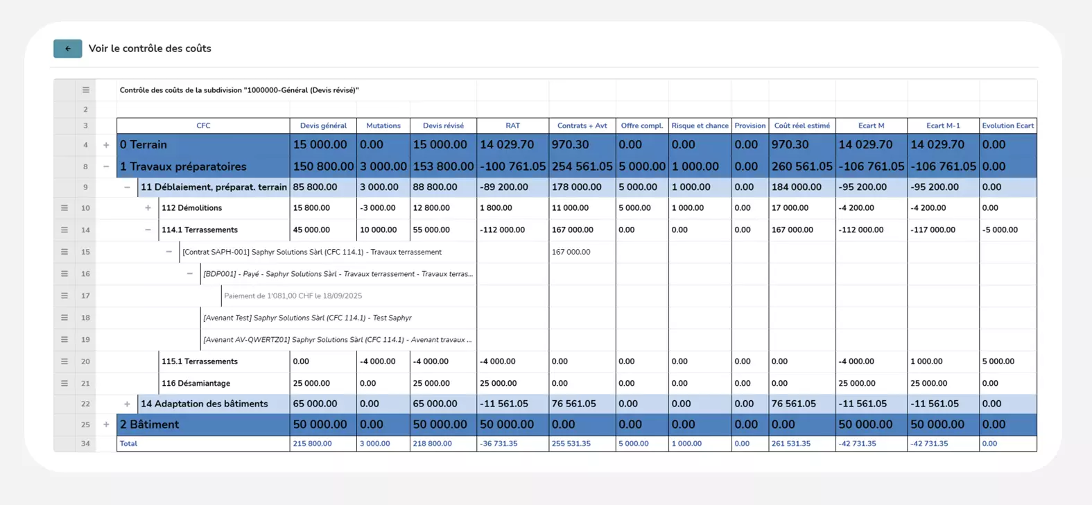 • Conservez une image du budget au fur et à mesure de l'avancée du chantier